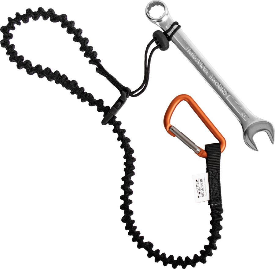 Эластичная регулируемая по длине стропа с карабином, для удержания инструмента от падения.